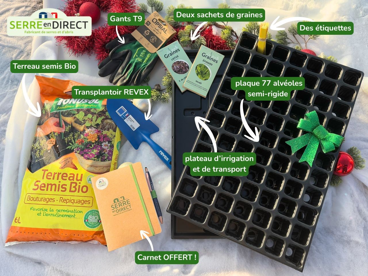 Un coffret de Noël pour préparer sous votre serre vos premiers semis comme un PRO. En cadeau un carnet avec stylo, indispensable au jardin.
