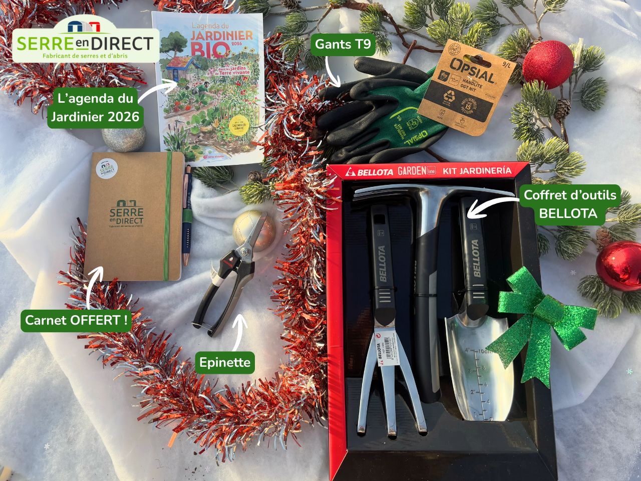 Un coffret de Noël pour vous équiper au jardin comme un PRO. En cadeau un carnet avec stylo, idéal pour organiser son potager.