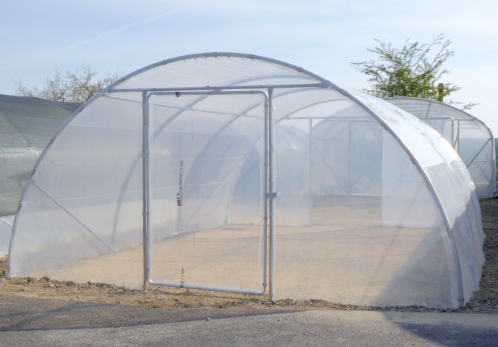 La serre tunnel maraicher Dolmen 450 est proposée avec une ou deux portes (1,20 m de large et 1,85 m de haut).