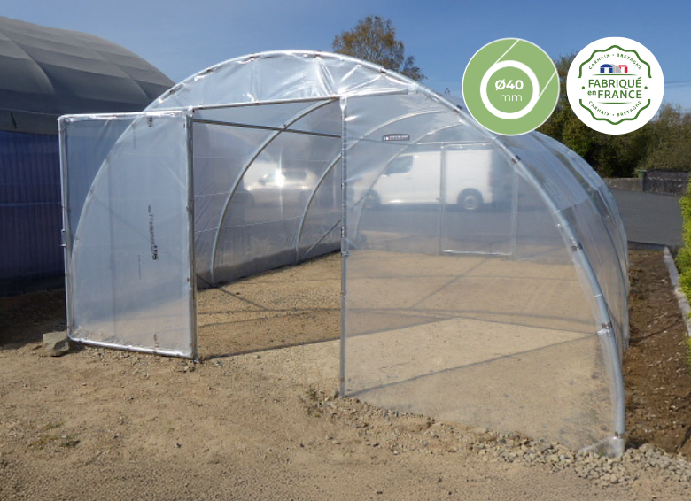La serre tunnel maraicher Dolmen 450 est proposée avec une ou deux portes (1,20 m de large et 1,85 m de haut).