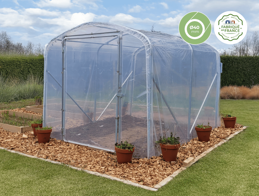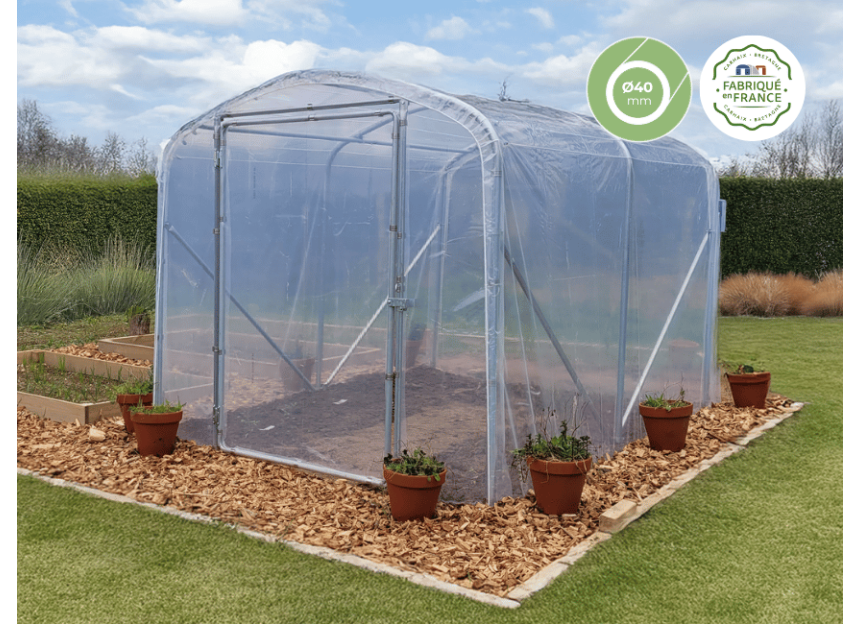 • Arceaux de la serre : tubes en acier galvanisé de 40 mm.