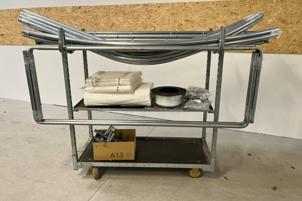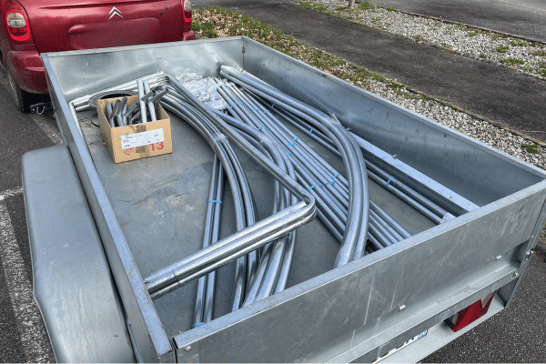 Une serre de jardin Dolmen 330 se transporte : dans une remorque (minimum 1.70 m. de longueur), un monospace ou un break (longueur maxi. des tubes  : 2,30 mètres).