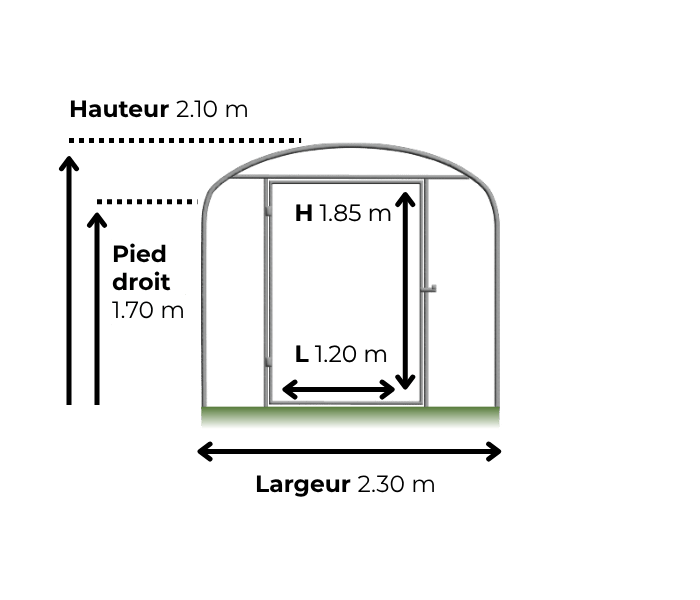 Pour toutes les longueurs de serres, nous recommandons d’installer une porte à chaque pignon. Vous pourrez ainsi ventiler correctement votre serre pour faire baisser la température.