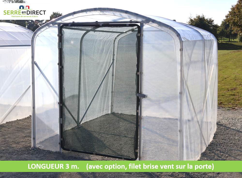 Pour toutes les longueurs de serres, nous recommandons d’installer une porte à chaque pignon. Vous pourrez ainsi ventiler correctement votre serre pour faire baisser la température.