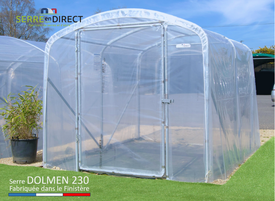 Profitez d'un déstockage de - 15% sur la serre DOLMEN 230 en longueur de 3 m avec une porte, jusqu'au 13 avril 2026.