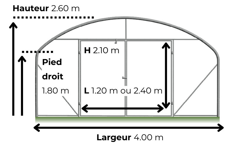 - Largeur de la serre : 4.00 m.