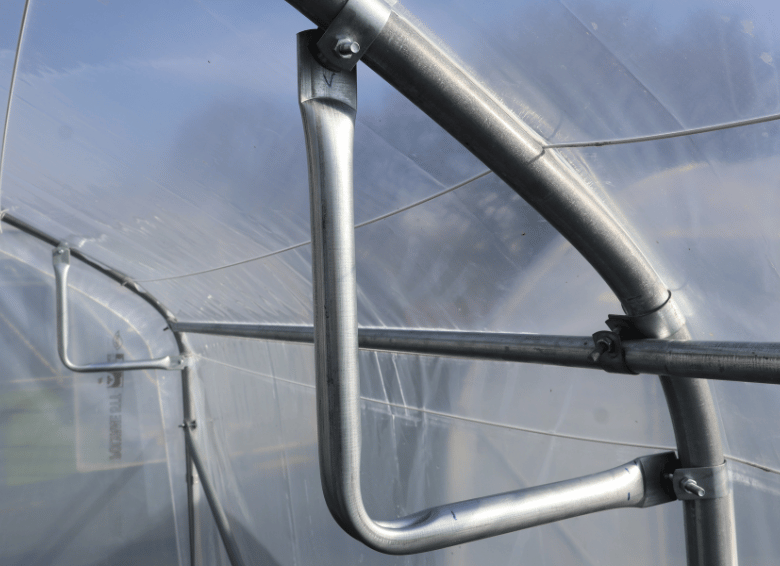 La forme des supports d'étagère n'est pas adaptée pour une pose dans une serre tunnel comme une serre Dolmen 450.