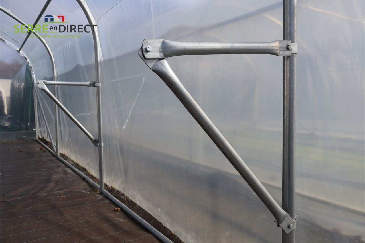 Les supports peuvent être posés dans une serre à pieds droits ou dans une serre tunnel.