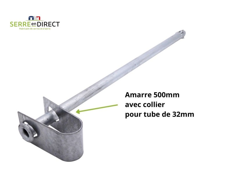L'amarre grappin de 500mm de longueur est livrée avec un collier qui permet sa fixation sur une entretoise en tube de 32mm.